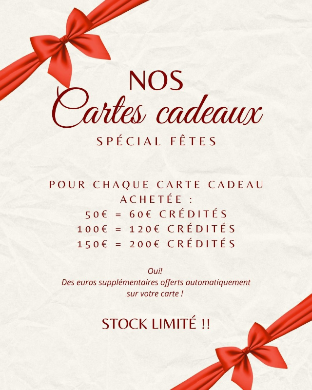 Durant toute la période des fêtes, profitez de nos cartes cadeaux bonifiées :
